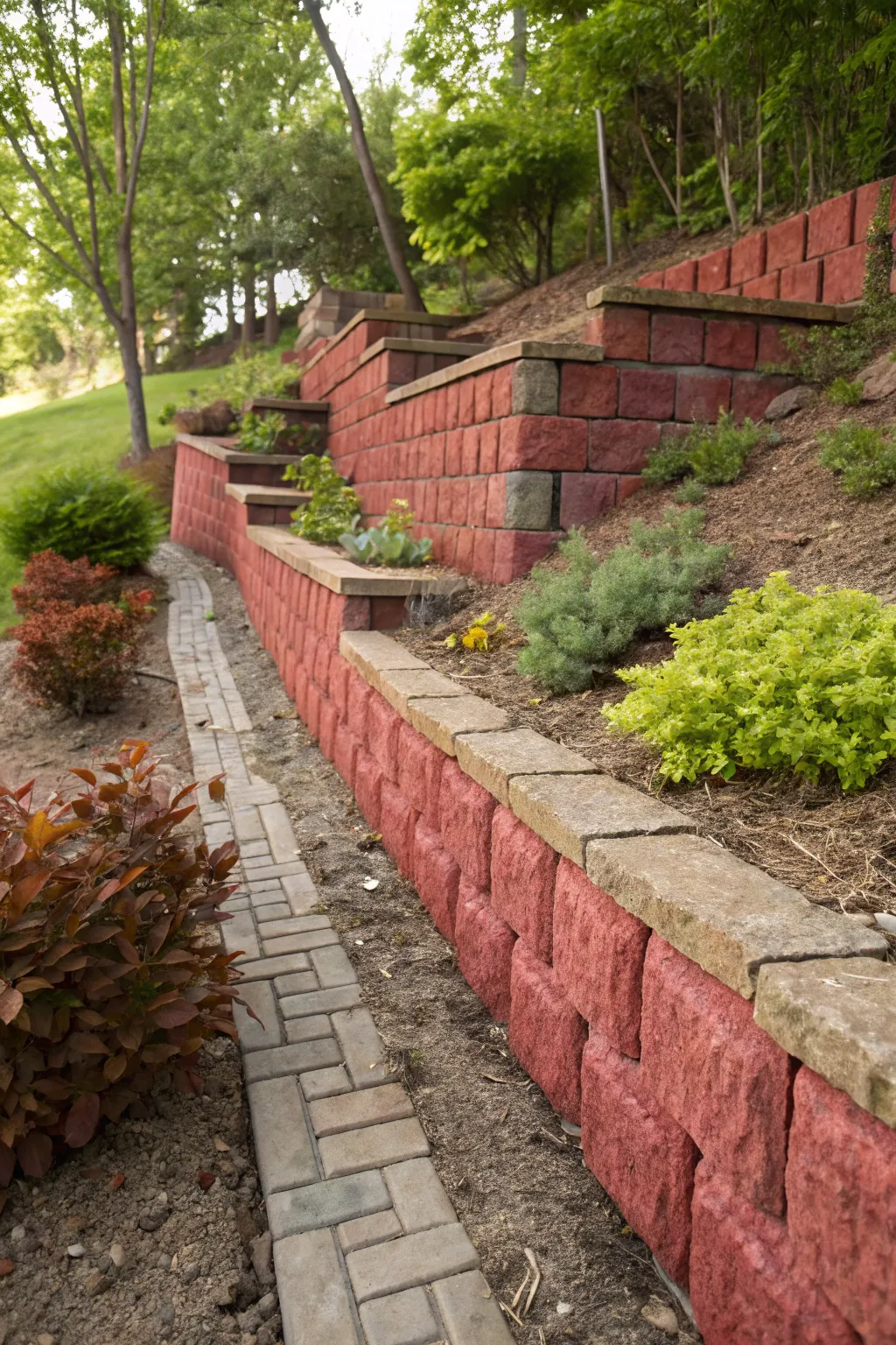 For a dynamic look, consider multi-tiered retaining walls. Not only do they offer more surface area for plants, but they also create an eye-catching layered effect that’s hard to resist.