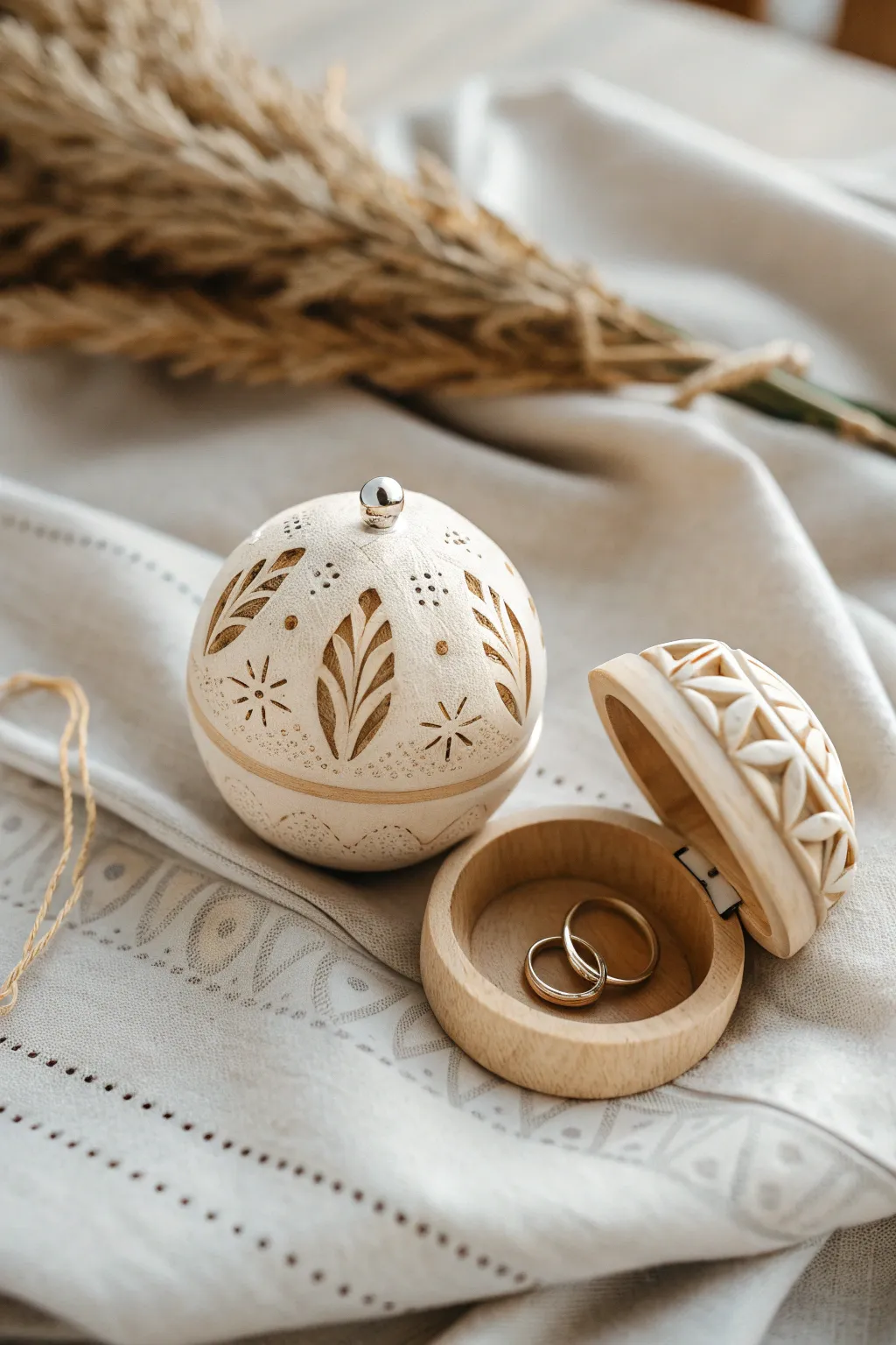 • Carved Ornament Keepsake Box: Capture holiday memories with a carved ornament box, ideal for displaying wedding rings elegantly.
