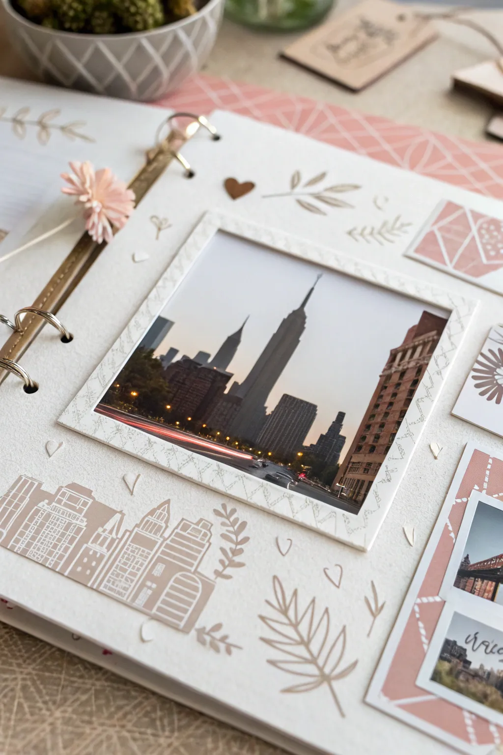 Capture the essence of the city with a touch of minimalistic elegance in your scrapbook.