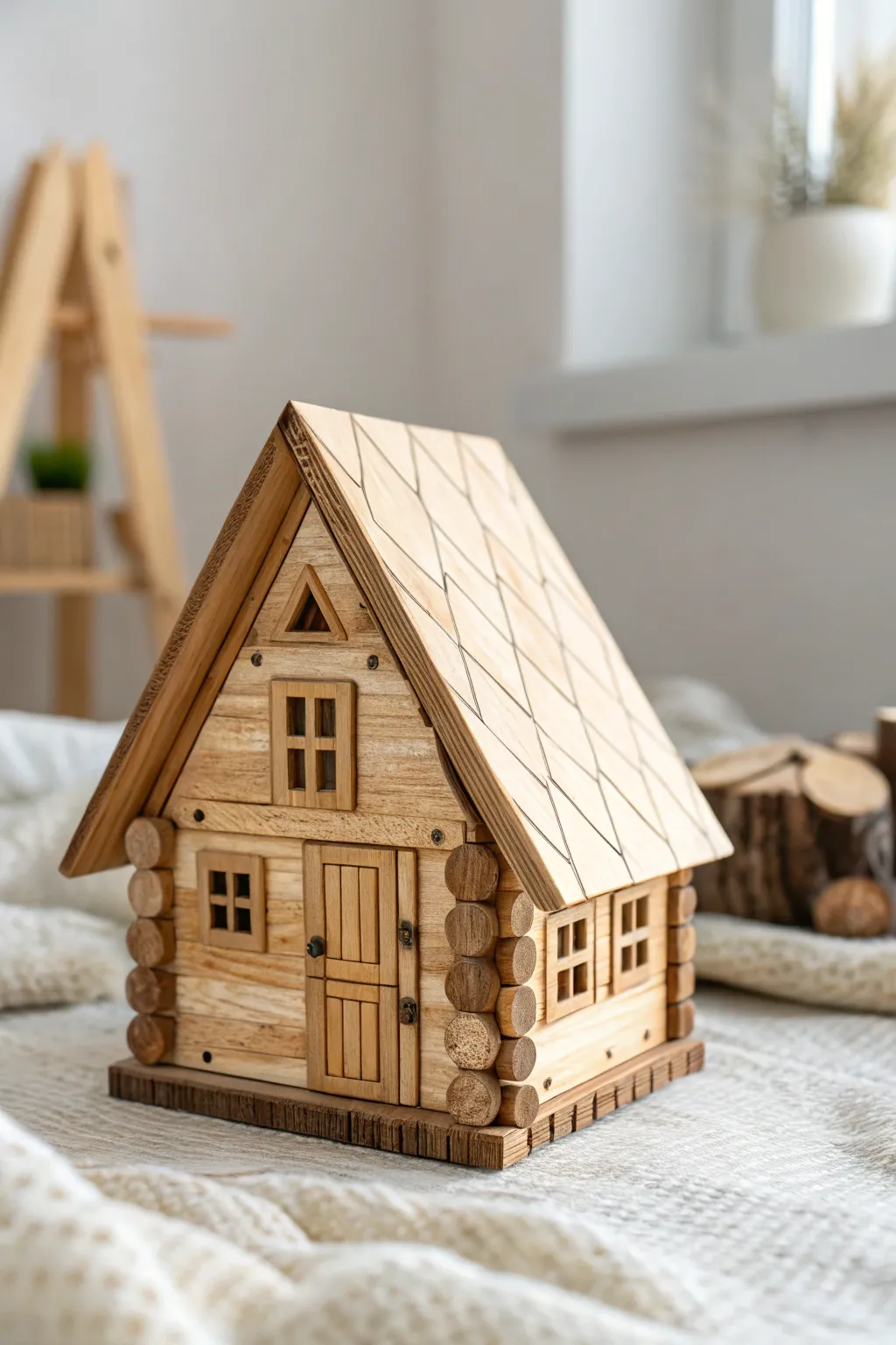 Delight in the simplicity of a charming miniature wooden house, where craftsmanship meets creativity.
