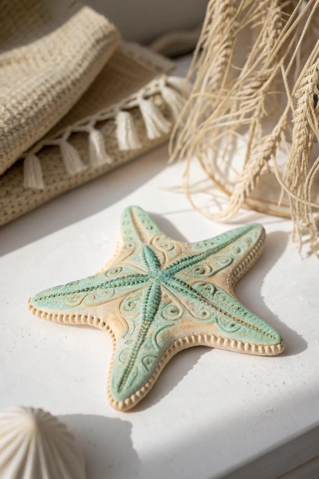 Embrace the simplicity of nature with this handcrafted salt dough starfish, painted in calming pastels.