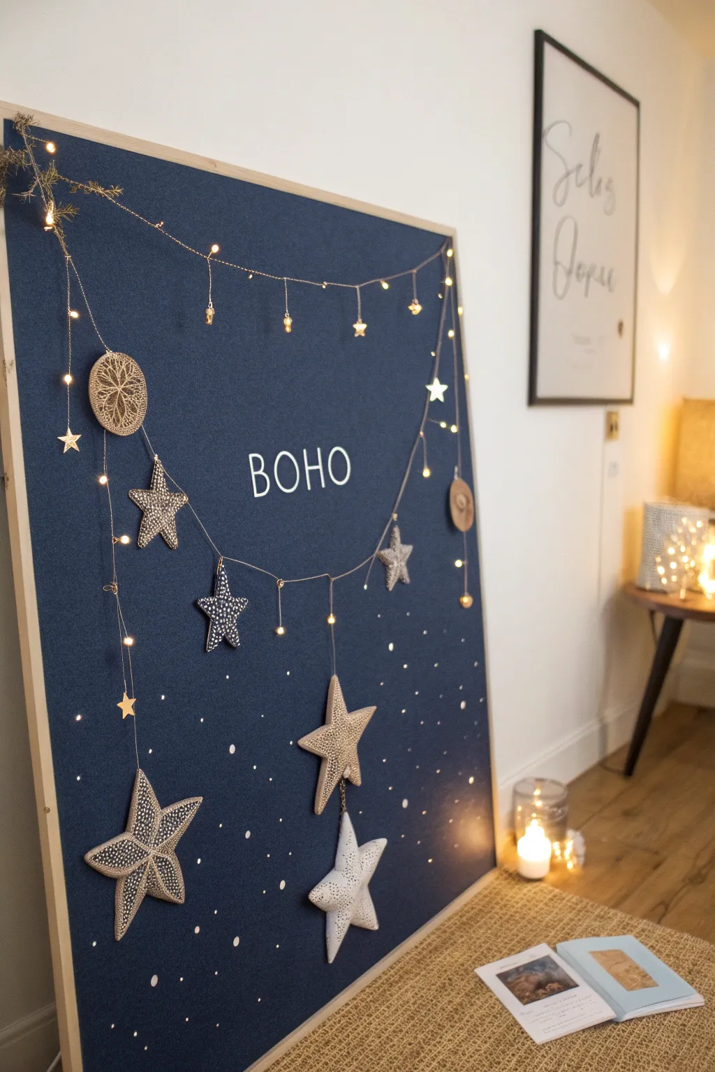 - String Lights with Stars: Illuminate your bulletin board with enchanting starry string lights for a mesmerizing reading atmosphere.