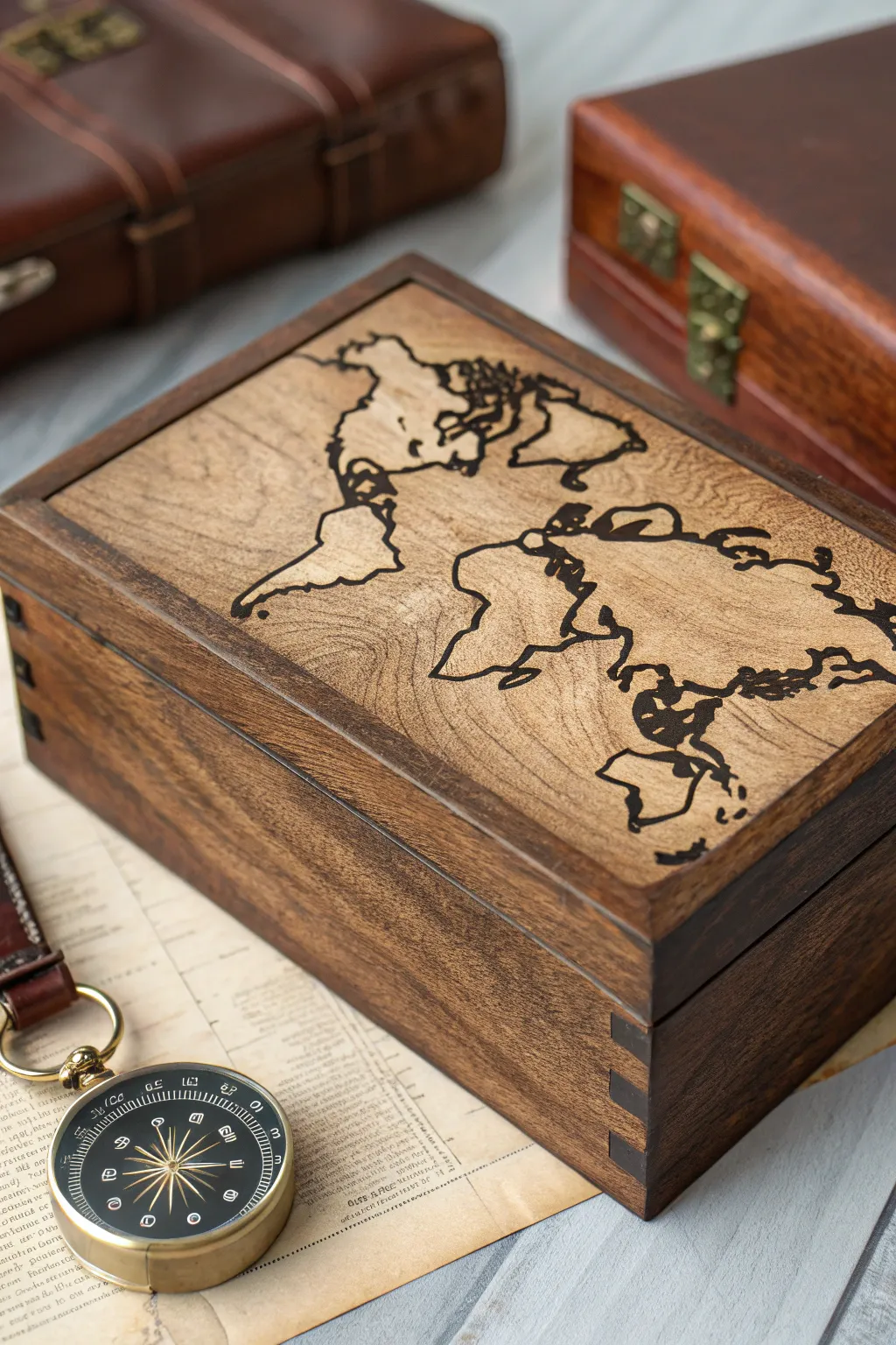 Travel back in time with a vintage-style box featuring an old-world map. I crafted one for a friend who loves travel, and it’s become her travel keepsake holder.