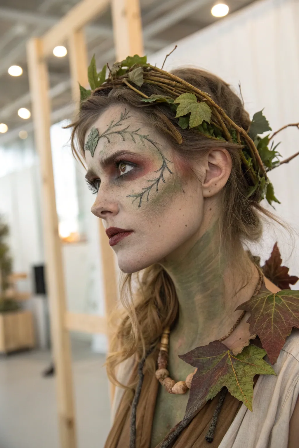 Incorporate earthy tones and leaf-like textures into your makeup. This woodsy zombie look is great for nature lovers who also love a good scare.